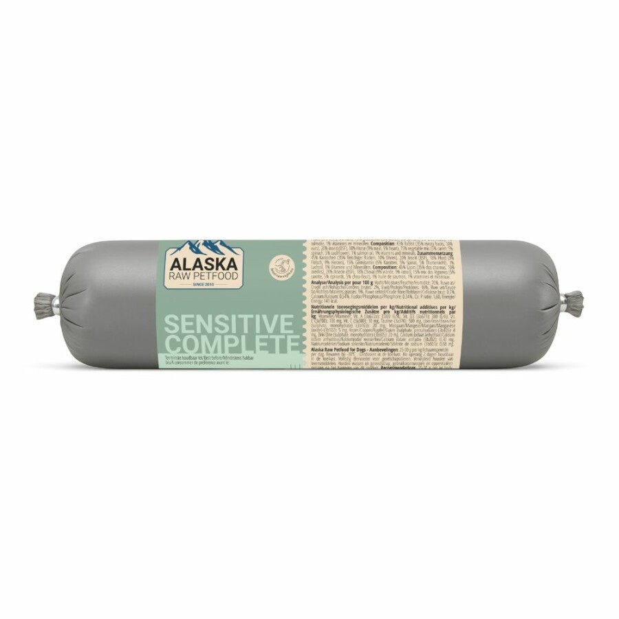 Een complete variant met verschillende diersoorten. Alaska Sensitive Complete bevat spiervlees, bot en organen van konijn, insect en paard en een groentemix met wortel, spinazie en bloemkool.