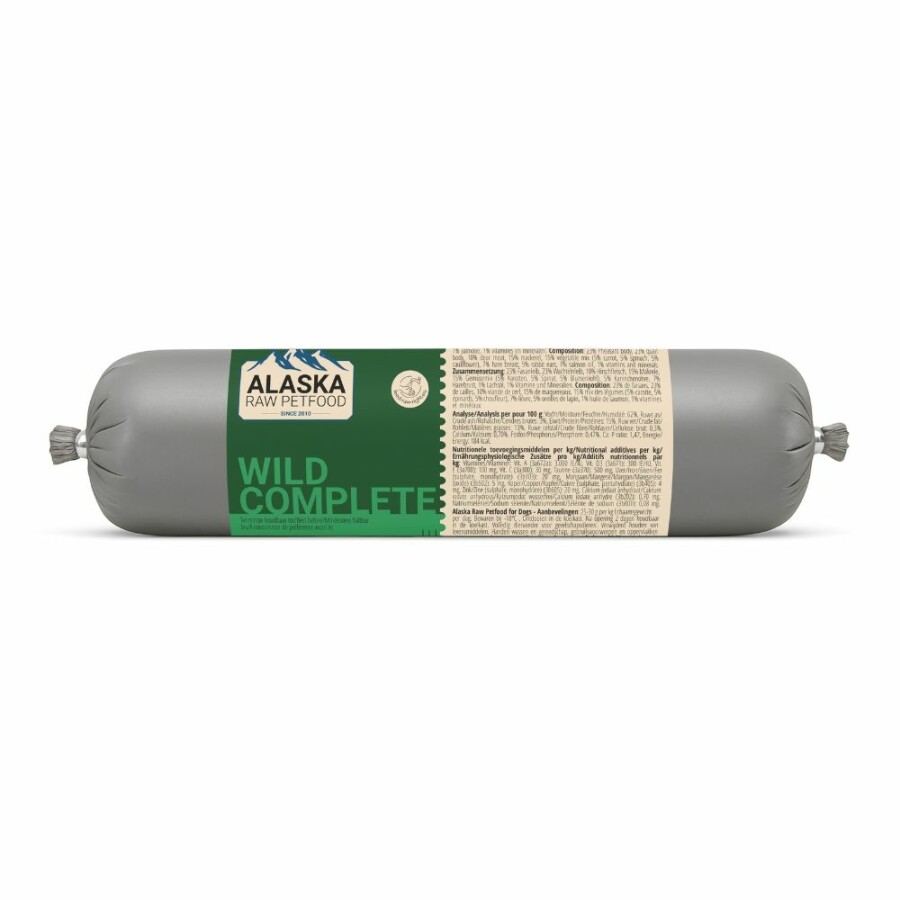 Een complete variant met verschillende diersoorten. Alaska Wild Complete bevat spiervlees, bot en organen van fazant, kwartel, hert, makreel, haas en konijn. Ook bevat het een groentemix met wortel, spinazie en bloemkool.