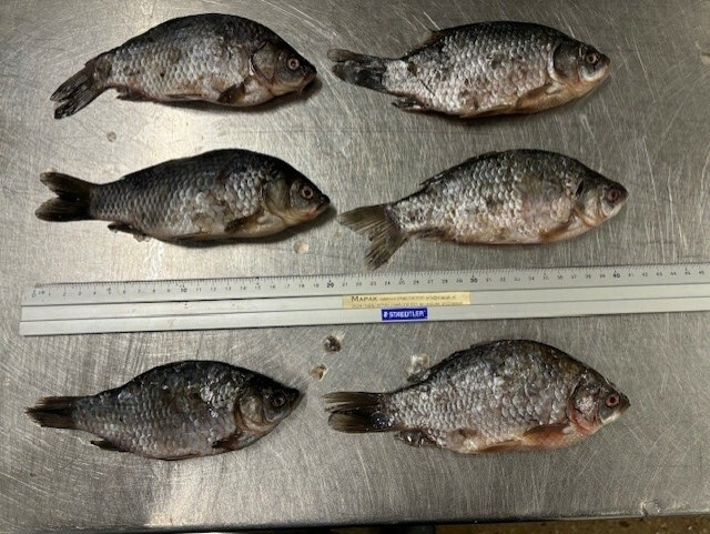Deze karpers (Carassius Gibelio) zijn afkomstig van aquacultuur in Turkije. Karpers zijn zoetwatervissen, een goede aanvulling op het dieet van dieren die in de natuur zoetwatervissen eten.